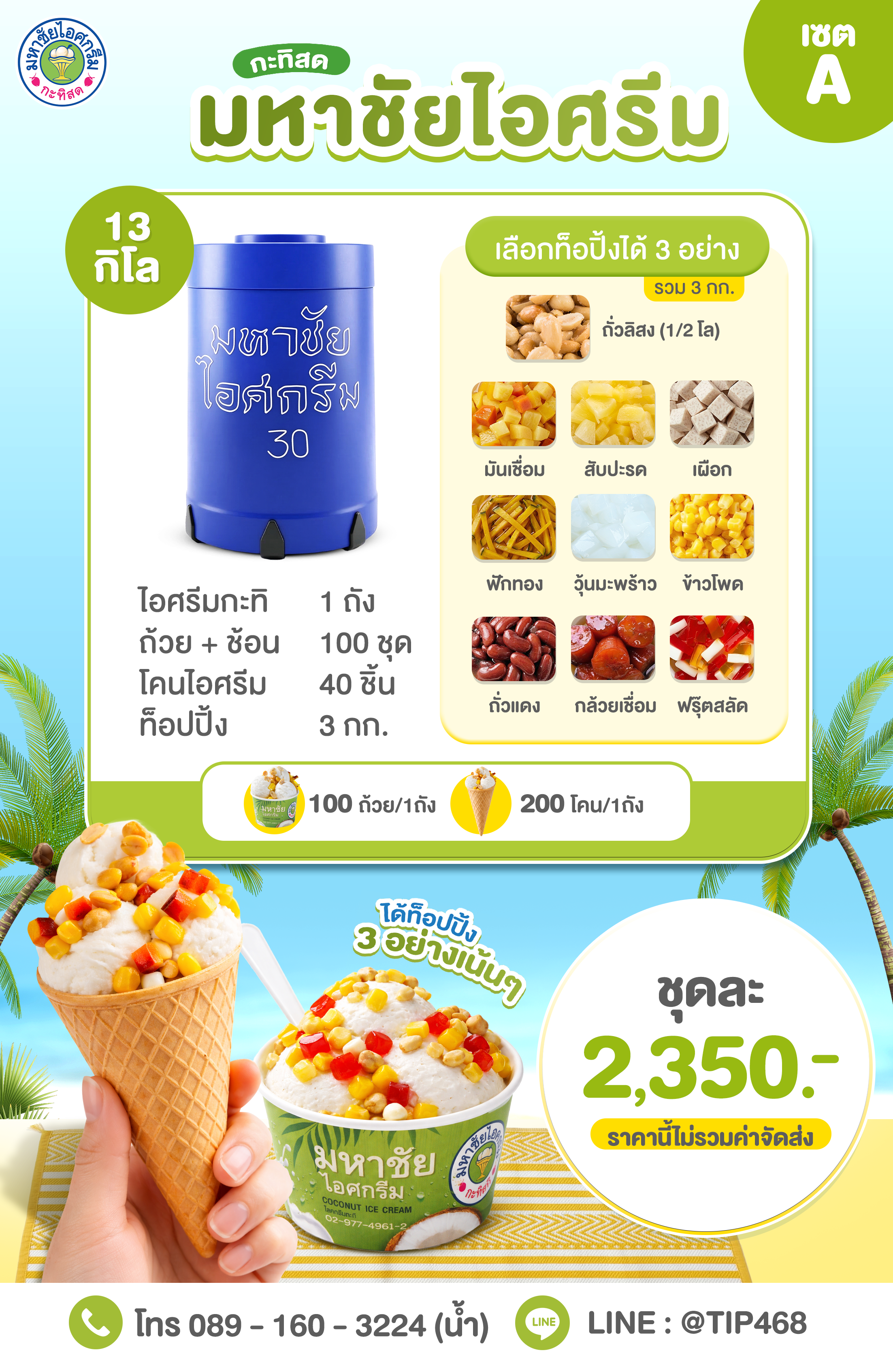 ไอศกรีมมหาชัย แบบถัง 13 กก. + ท็อปปิ้ง 2,350 บาท