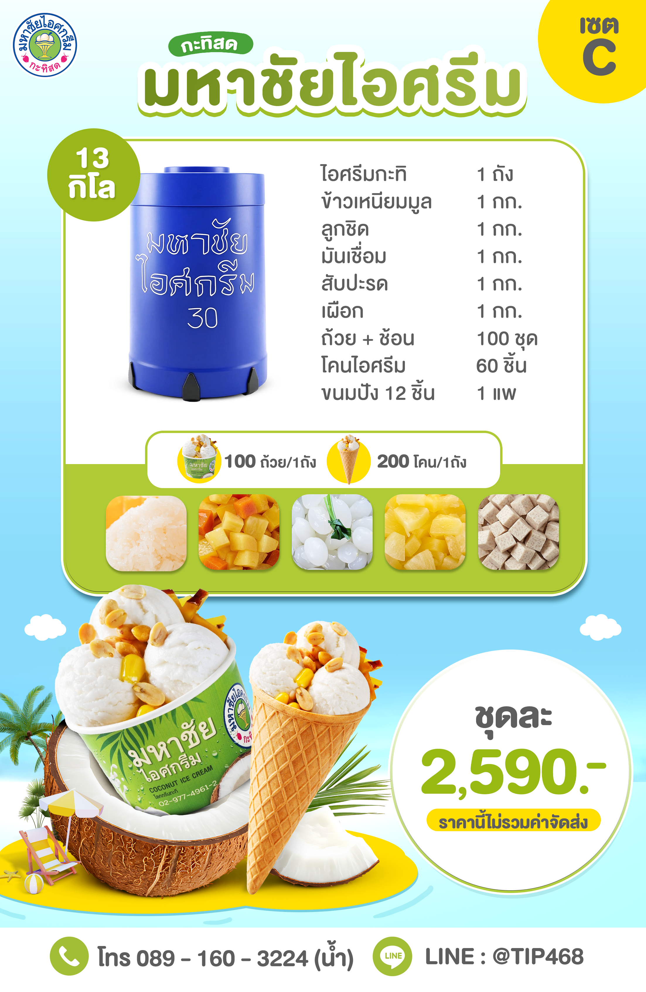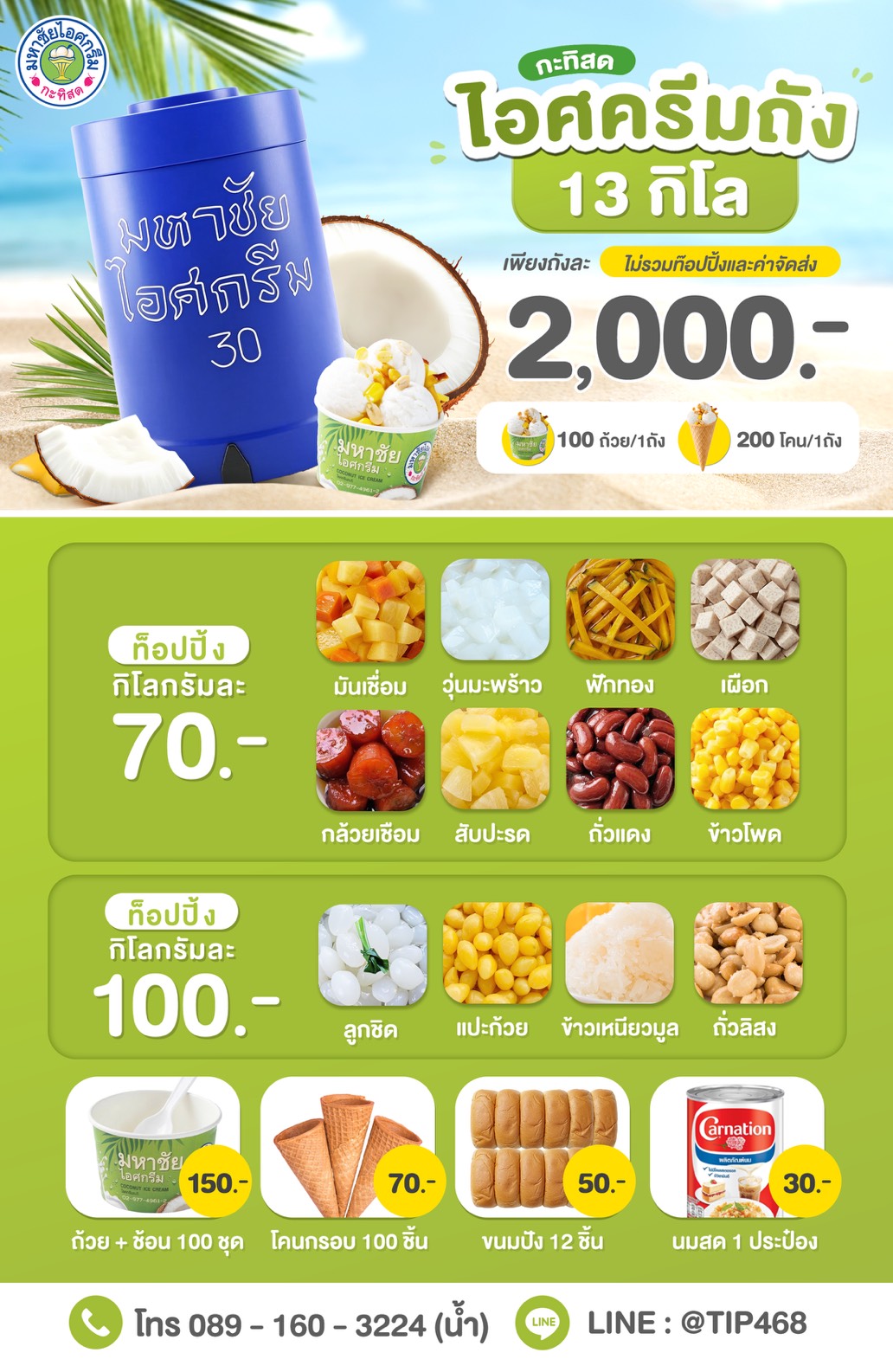 ไอศกรีมมหาชัย แบบถัง 13 กก. + ท๊อปปิ้ง 2,590 บาท