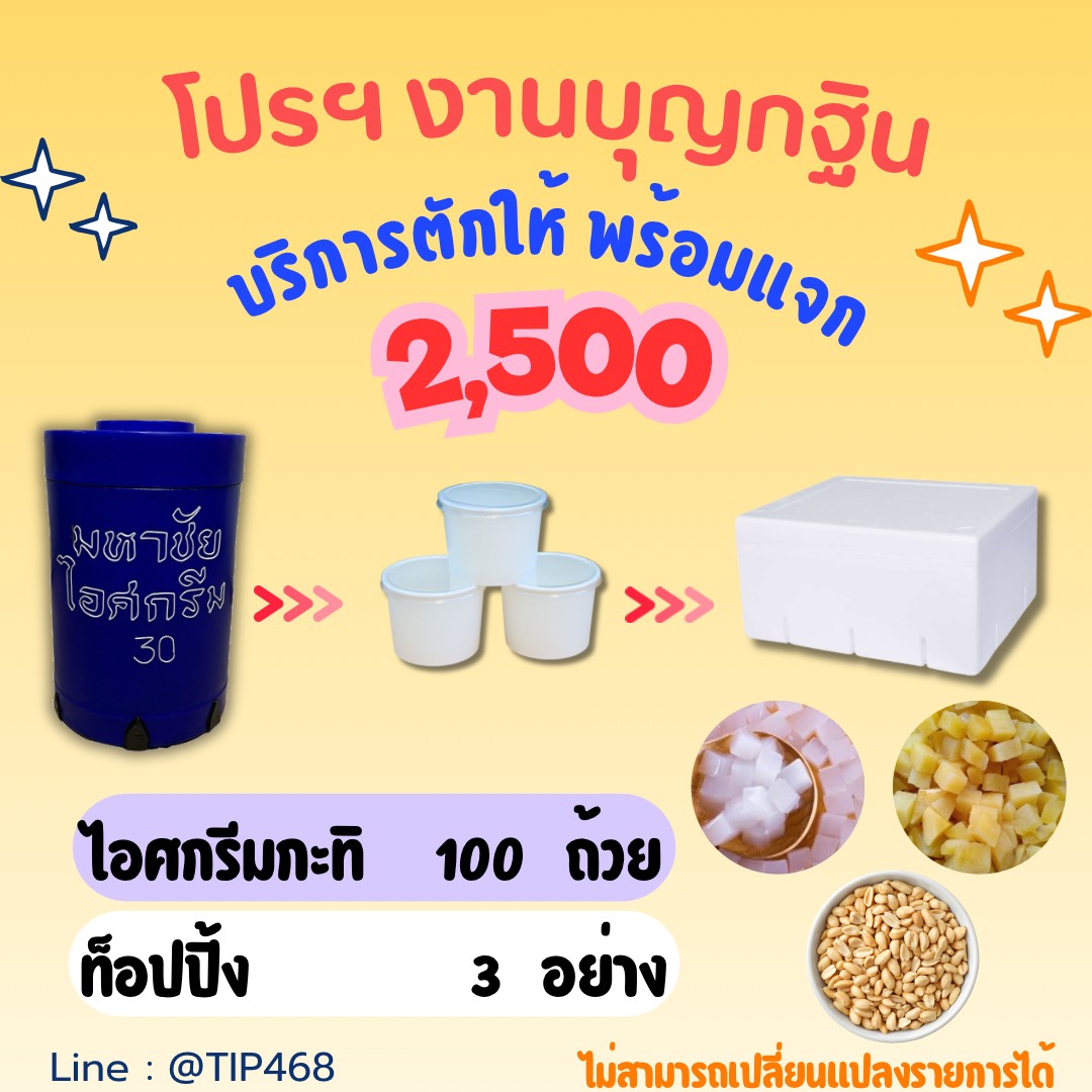 ไอศกรีมมหาชัยพร้อมจัดส่ง!! บริการจัดเลี้ยงงานพิธีต่างๆ ทั้งในและนอกสถานที่