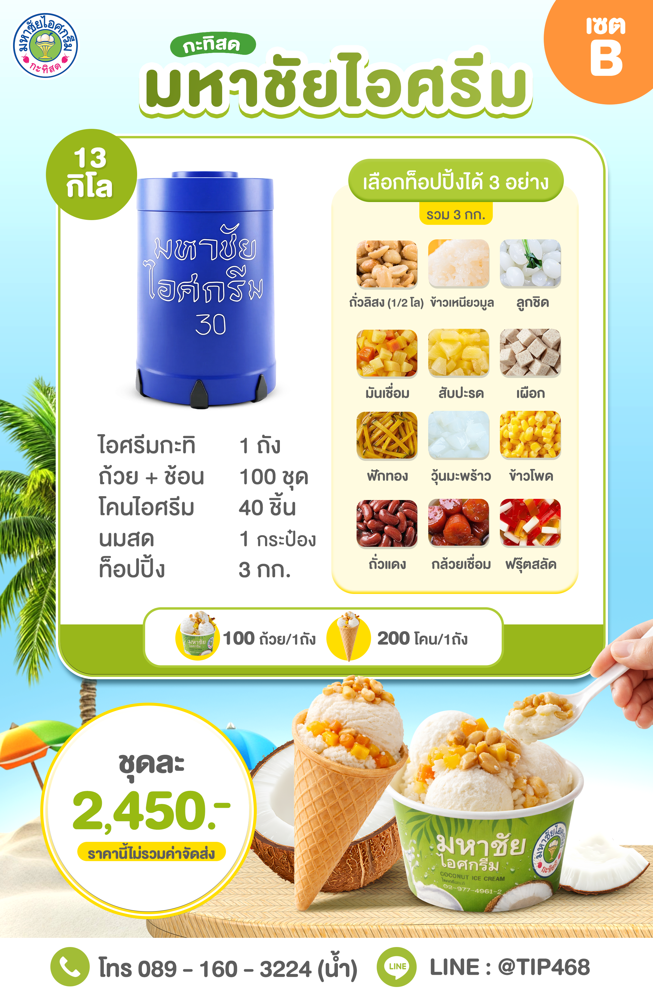ไอศกรีมมหาชัย แบบถัง 13 กก. + ท๊อปปิ้ง 2,450 บาท