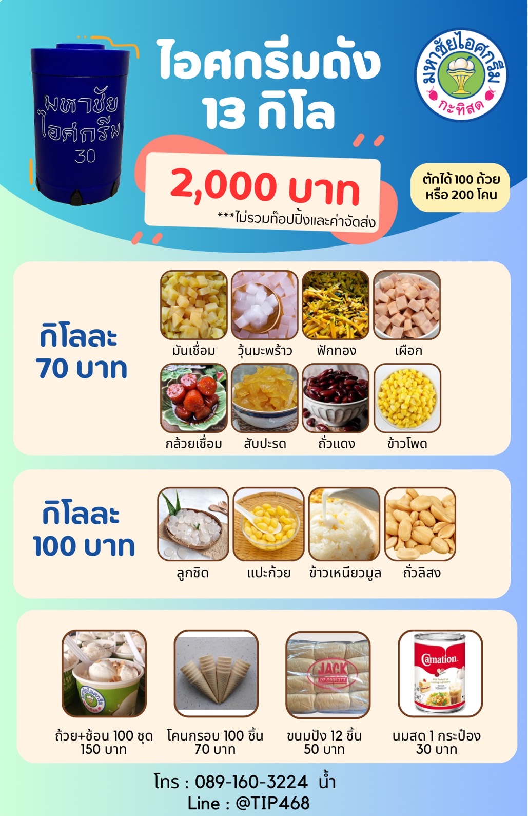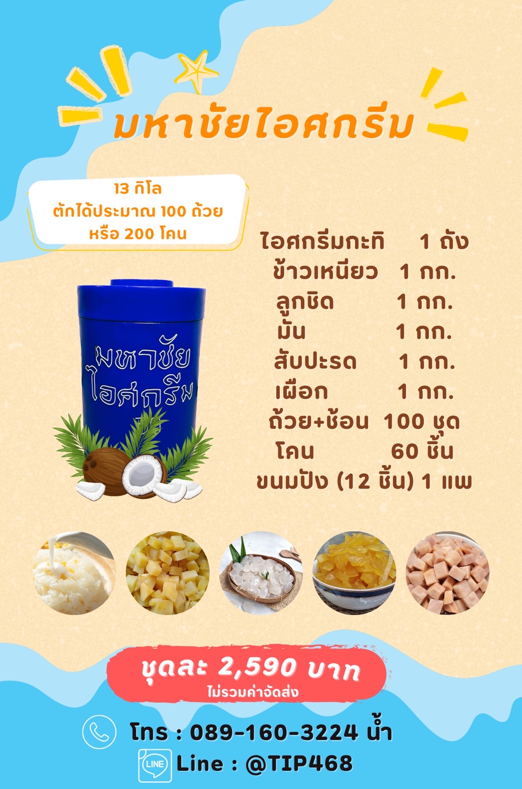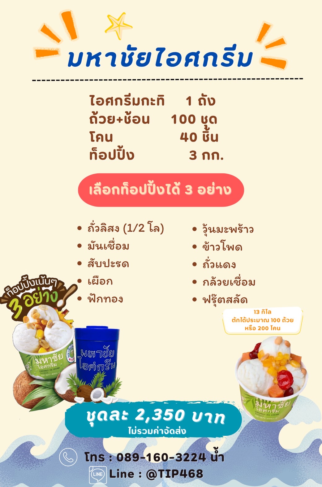 ไอศกรีมมหาชัย แบบถัง 13 กก. + ท๊อปปิ้ง 2,590 บาท